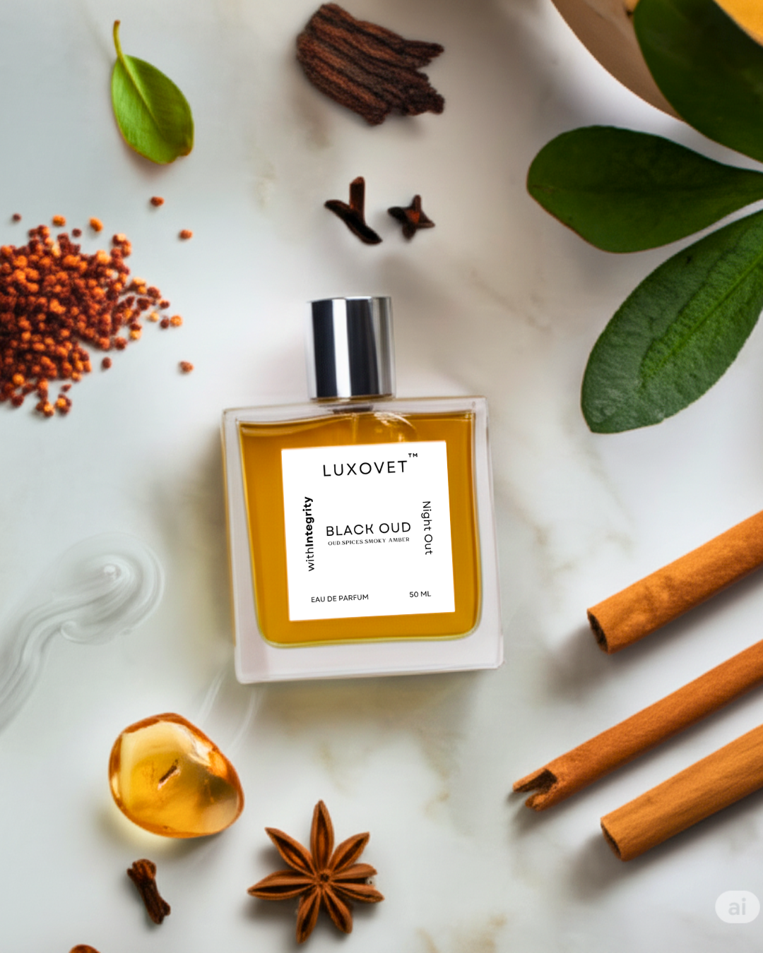 - Luxovet Black oud Woody Spicy fragrance for men.