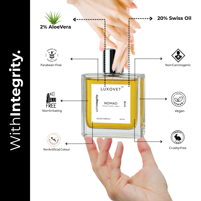 Luxovet perfumes are crafted with 20% premium oil concentration, made using Swiss-imported oils. They are vegan, non-irritating, paraben-free, and designed with minimalist integrity.