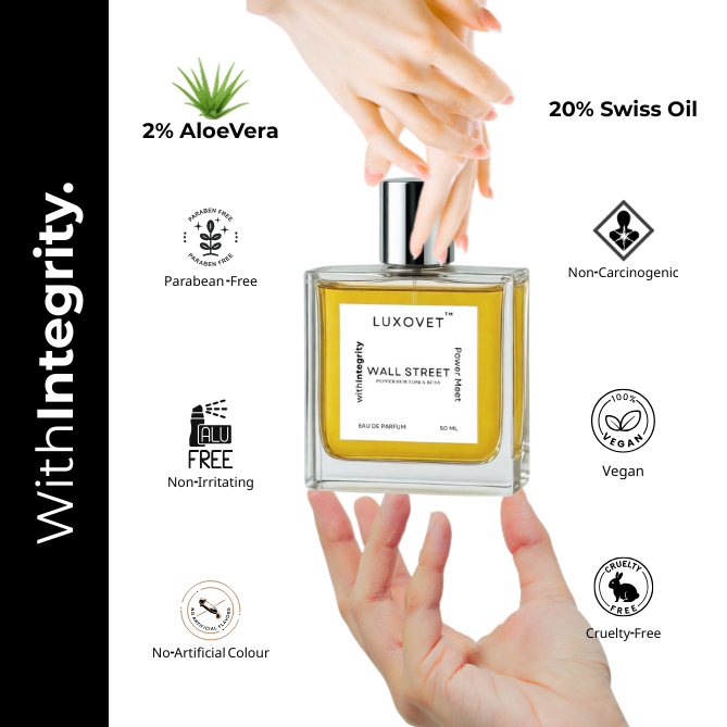 Luxovet perfumes are crafted with 20% premium oil concentration, made using Swiss-imported oils. They are vegan, non-irritating, paraben-free, and designed with minimalist integrity.